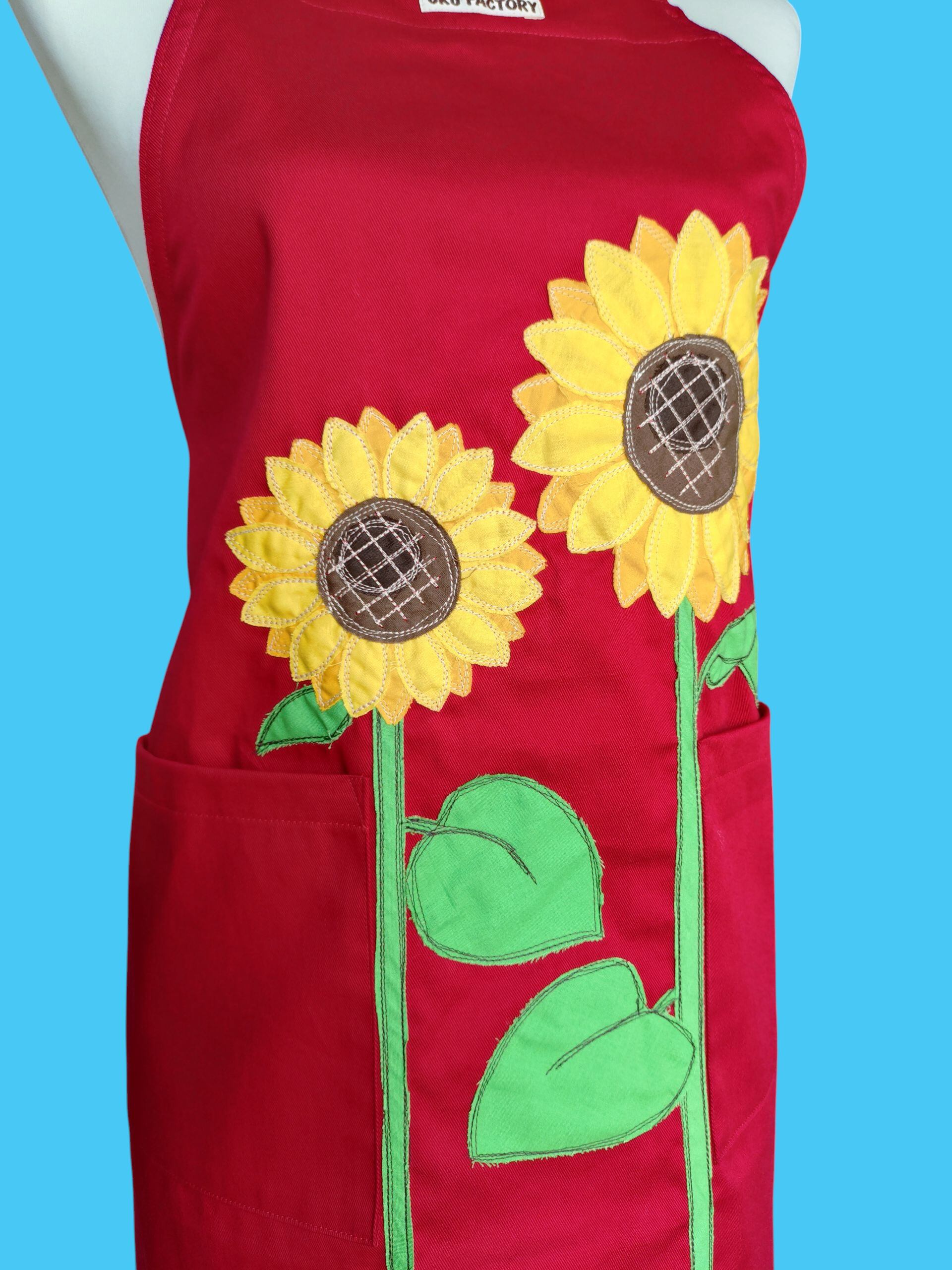 「ひまわりとカブトムシのエプロン」は、季節の風景を切り取ったようなアップリケエプロンです。
